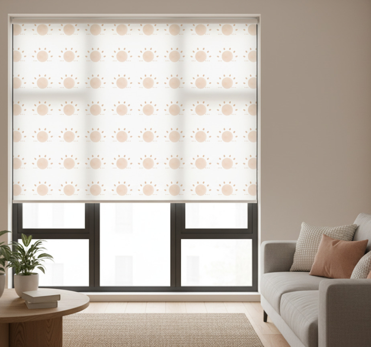 Reference: E8132Introducing the Beige roller blind abstract minimal sun, a stunning blend of contemporary design and functionality! With its elegant abstract patterns and minimalistic style, this roller blind not only enhances the aesthetic appeal of your space but also offers practical benefits. Its easy assembly allows you to set it up in just 2 clicks, while its easy-to-clean fabric ensures that maintaining its pristine look is a breeze. Enjoy the perfect balance of light and privacy as it protects your room from direct sunlight, creating a serene and comfortable environment!