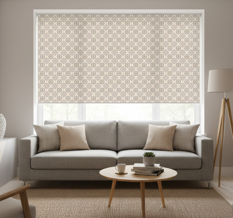 Beige roller blind cement beige tiles