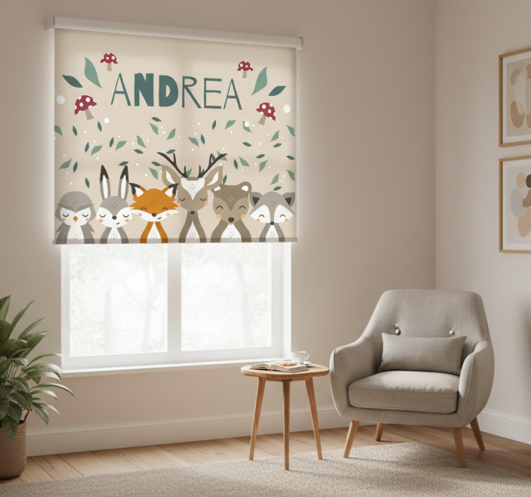 The Beige roller blind personalized animal designs for kids Beige roller blind is the ideal decorative solution for any child's room! Its playful animal designs elevate the decor, creating a fun and inviting space. Imagine the joy on your child's face when they see their favorite animals featured in their room! Not only does it enhance the room's aesthetic, but it also contributes to a soothing environment, promoting comfort and creativity. Make decorating a delightful experience with this charming roller blind!