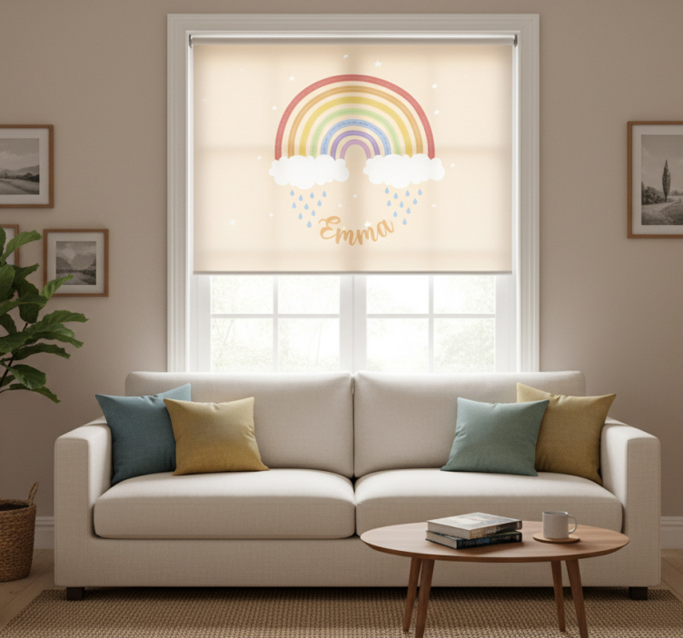 The Beige roller blind watercolor rainbow with name is more than just a functional item; it is an artistic statement! This beautiful roller blind enhances your home decor by adding a splash of color and personality, transforming ordinary windows into captivating focal points. Imagine the joy of having a personalized touch that reflects your style while providing practical benefits such as privacy and light control. It’s a perfect choice for those who want to create an inviting atmosphere!