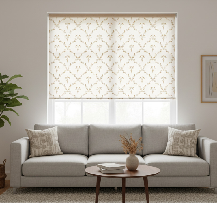 Beige roller blind with hexagonal floral design