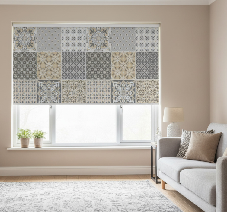 Beige roller blind with moroccan tile design