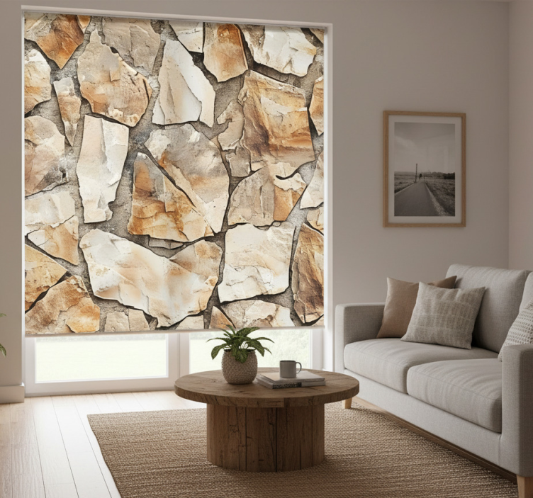 Beige roller blind with rustic design