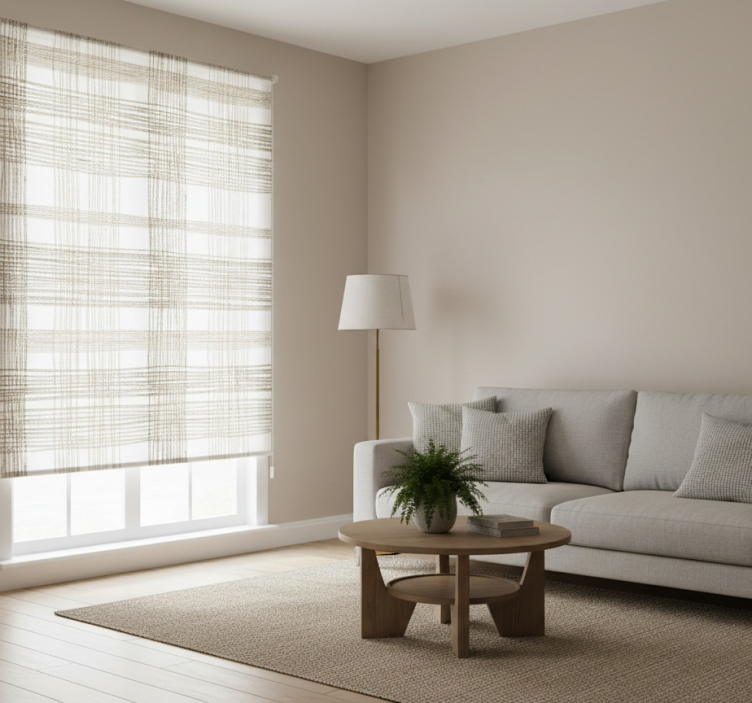 Beige roller blind with thin beige jute pattern