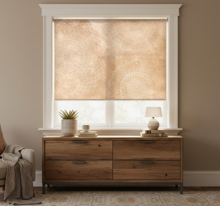 Beige roller blind with vintage mandalas design