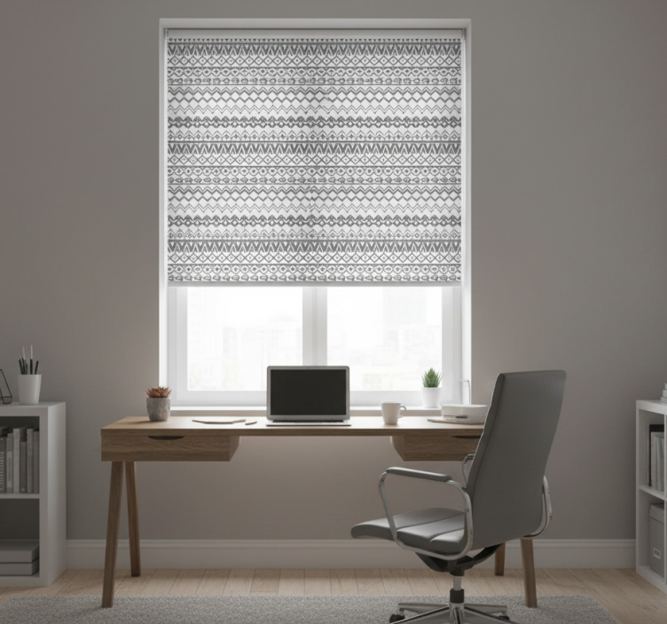 The Black roller blind with hand drawn tribal design is an exceptional choice for enhancing your interior decor. Its unique design not only provides a stylish flair but also transforms any ordinary space into a captivating environment. Imagine the warmth and personality it brings to your living area, bedroom, or office! This versatile Black roller blind complements various styles, from bohemian to modern, making it a perfect addition to your decor.