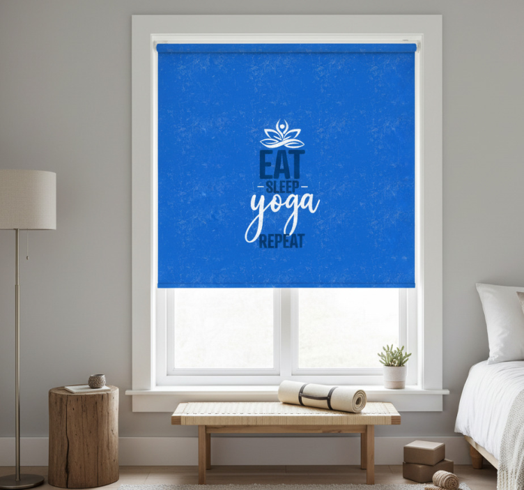 Blue roller blind eat sleep yoga repeat