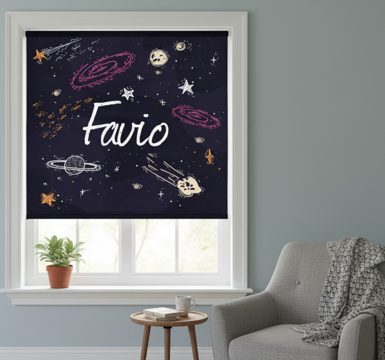 Reference: E9128Transform your living space with our Blue roller blind galaxy with customizable name, a stunning blend of creativity and functionality! Featuring a mesmerizing galaxy design, this roller blind adds a touch of cosmic charm to any room. Easy assembly in just two clicks, it offers effortless cleaning and disassembly, ensuring your windows and surroundings remain spotless. Not only does it protect your room from direct sunlight, but it also provides privacy when lowered and helps regulate room temperature, making your home both secure and stylish.