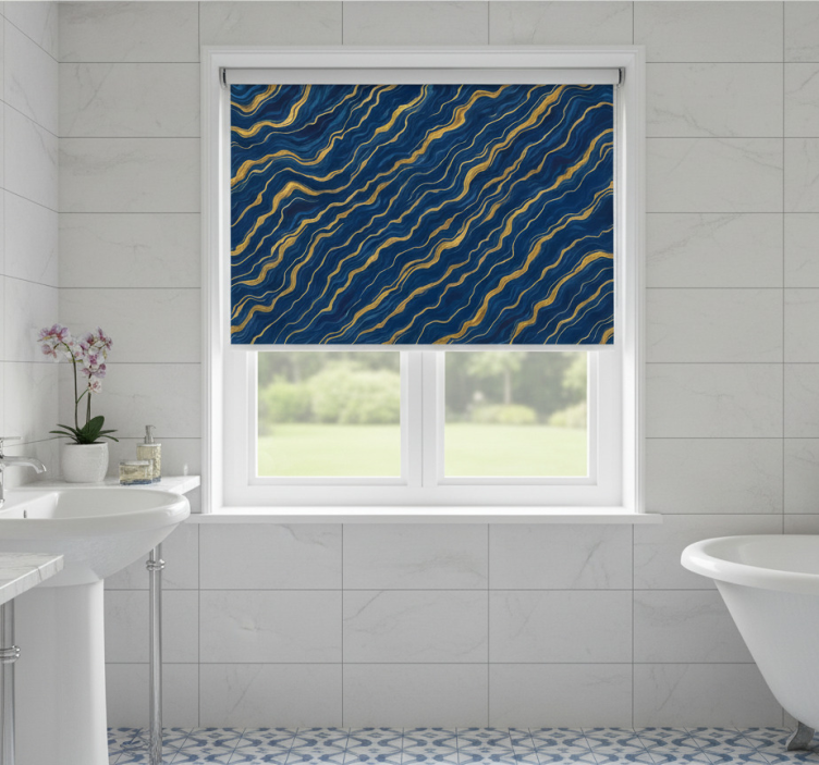 The Blue roller blind in blue and gold marble is the perfect choice for those looking to elevate their home decor! Its striking design adds a touch of sophistication and modernity to any space, making it an ideal focal point in living rooms, bedrooms, or home offices. Imagine the compliments you'll receive from guests when they see this exquisite roller blind transforming your interior into a stylish sanctuary! This Blue roller blind not only enhances aesthetics but also blends seamlessly with various interior styles, adding an air of luxury and warmth.