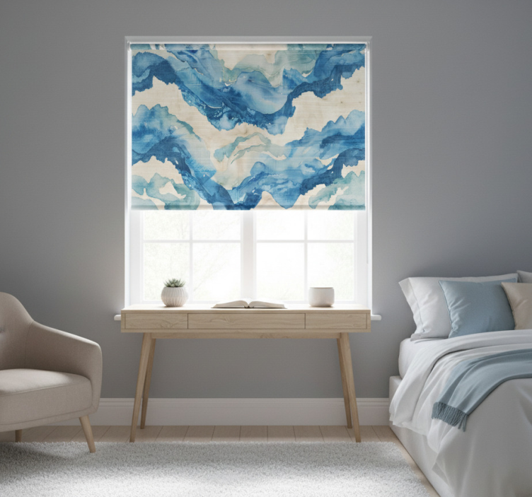 The Blue roller blind marbled waves pattern Blue roller blind is an outstanding addition to any home decor. Its mesmerizing marbled waves create a tranquil atmosphere, making it perfect for living rooms, bedrooms, or study areas. Imagine the delightful ambiance it brings, effortlessly elevating your space while protecting it from harsh sunlight! This roller blind is not just a window covering; it's a statement piece that inspires creativity and comfort in your home.