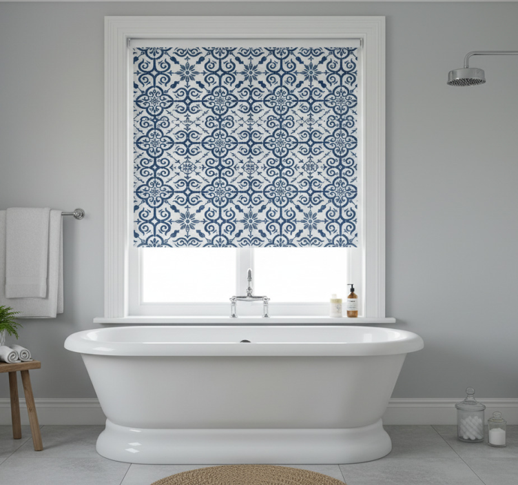 Blue roller blind moroccan blue tile
