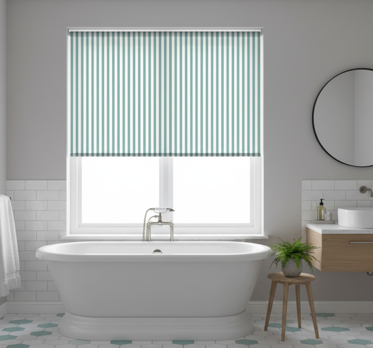Reference: E9028Transform your space with our Blue roller blind teal pinstripe design, featuring a stunning teal pinstripe pattern that effortlessly blends modern aesthetics with timeless charm. This roller blind not only enhances your decor but also offers easy assembly in 2 clicks, easy disassembly in 2 clicks for quick cleaning, and ensures your room remains shielded from direct sunlight while providing the privacy you desire. Enjoy the flexibility of regulating room temperature and the added security of being able to see outside without being seen!