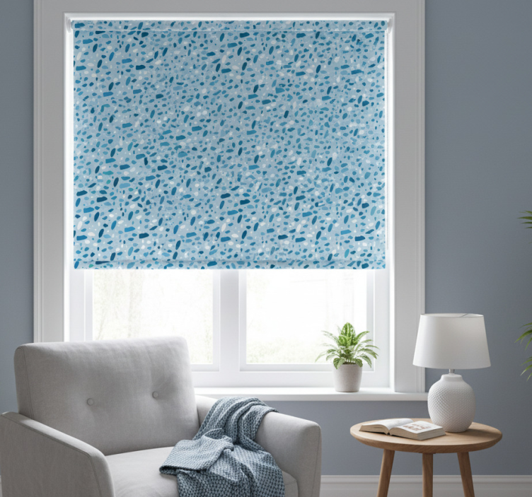 Blue roller blind with blue terrazzo texture