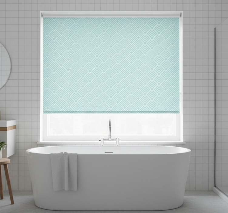 Blue roller blind with light blue zigzag lines