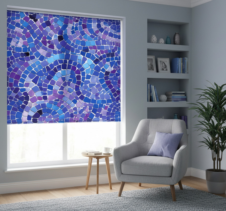 Reference: E9113Introducing our stunning Blue roller blind with mosaic pattern effect, a perfect blend of style and functionality! The unique mosaic pattern brings a vibrant and artistic touch to your space while offering essential features such as easy assembly in just two clicks, effortless cleaning, and the ability to regulate room temperature. This roller blind protects your room from direct sunlight, ensuring privacy when lowered, and enhances the overall decoration of any room.
