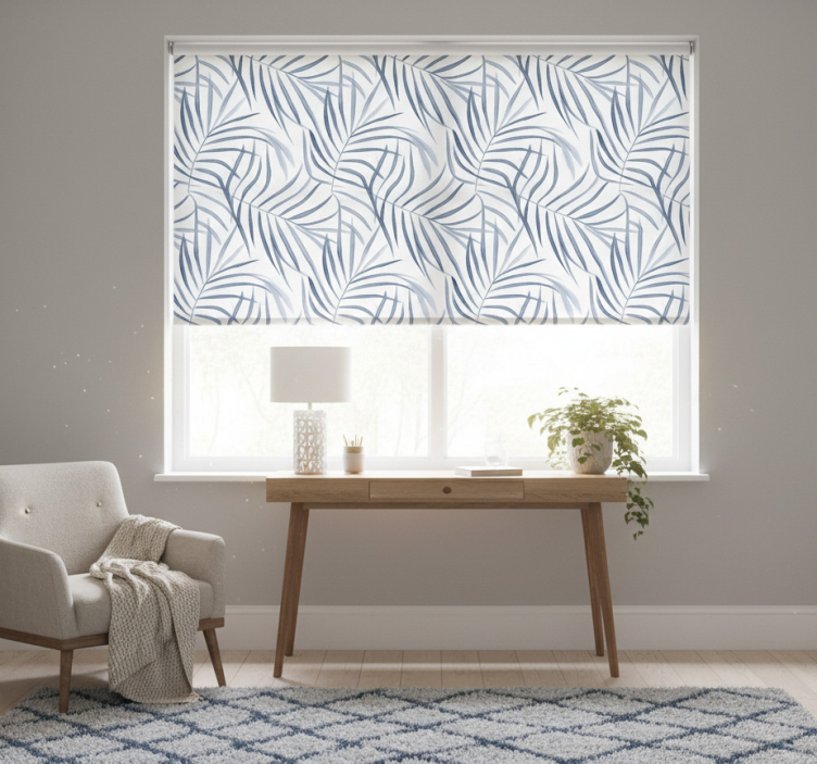 The Blue roller blind with slender leaf pattern is the perfect choice for those looking to elevate their home decor. Its calming hues and intricate design bring a touch of nature indoors, inspiring tranquility and warmth. Whether in a living room, bedroom, or office, this Blue roller blind seamlessly blends style with function, making it an essential element for any well-decorated space!