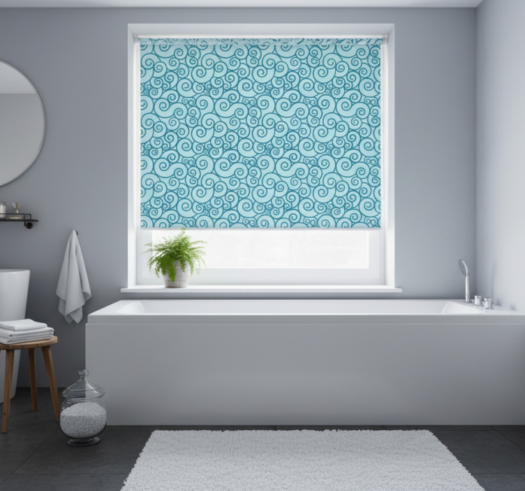 Reference: E9021Transform your space with our blue roller blind with swirly pattern design, a delightful addition that combines elegance and functionality. The intricate swirly pattern dances across a soothing blue backdrop, creating a visual harmony that brightens any room. This product not only elevates your interior aesthetics but also offers practical features like easy assembly and disassembly in just 2 clicks, ensuring effortless maintenance. Its easy-to-clean fabric allows for quick tidying, while the roller blind effectively protects your room from direct sunlight, providing both comfort and style.