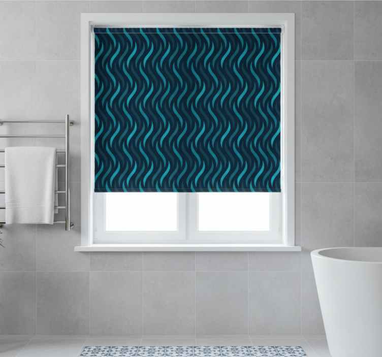 Blue roller blind with wavy texture