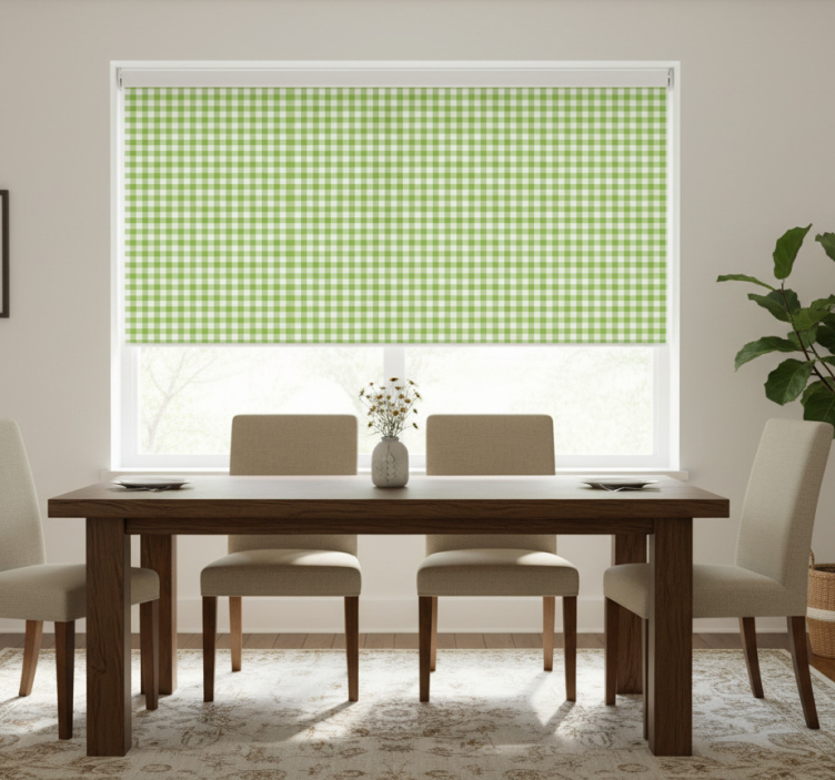 Dining room roller blinds gingham check design