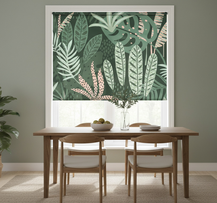 Dining room roller blinds tropical palm design