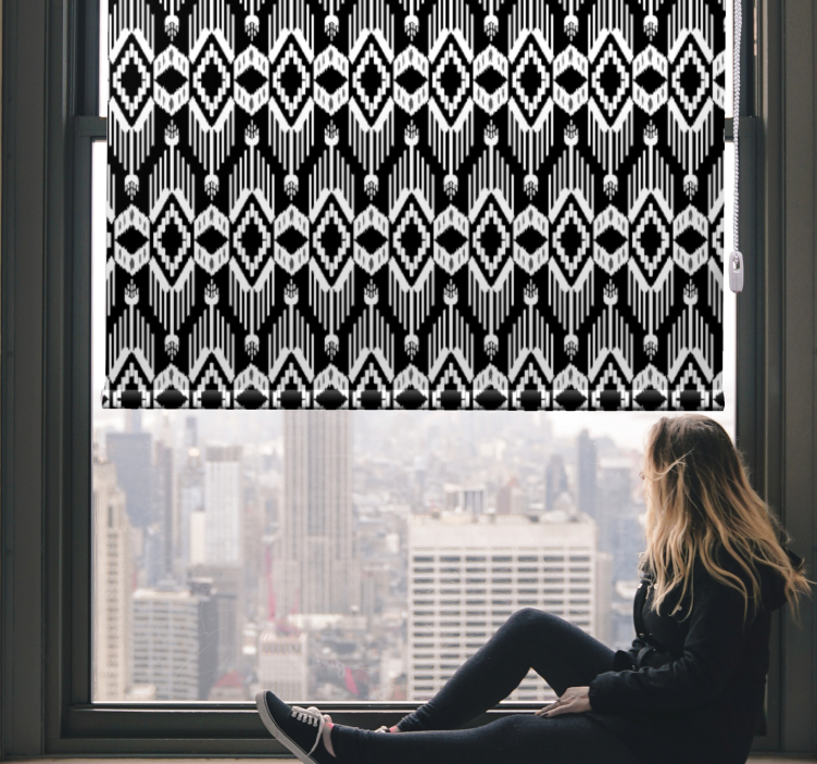 The Geometric black pattern texture roller blind features a stunning design that combines ethnic elements with rustic charm. The intricate shapes and patterns create a captivating visual that enhances any space. With its appealing black and white palette, it adds a touch of elegance while maintaining a modern vibe.