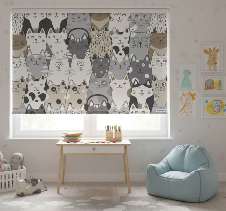 The Kids roller blind cartoon cats kids roller blind is an excellent choice for enhancing your child's room decor! Its playful design adds a touch of fun, making it a perfect focal point that can inspire creativity and happiness. This blind not only beautifies the space but also provides practical benefits, such as allowing natural light control while ensuring privacy. Transform your child's room into a magical haven with this charming roller blind!