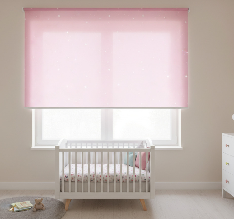 Reference: E6874Transform your child's space with our Kids roller blind white stars on pink background! This delightful design features whimsical white stars scattered across a soft pink background, creating a cheerful and enchanting atmosphere perfect for any child's room. The roller blind not only enhances the decor but also serves a practical purpose, offering protection from direct sunlight while providing the privacy your little ones need during playtime or nap time.