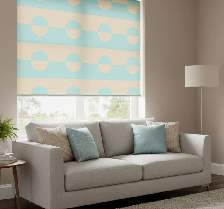 Modern roller blind in light blue and beige dots