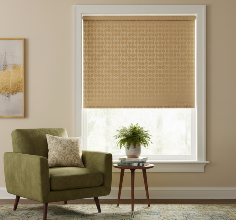 Reference: E7693Introducing the Modern roller blind with eclectic art deco gold columns, a stunning addition to any contemporary space! This beautiful design features intricate gold columns that embody the eclectic art deco style, transforming your windows into a visual masterpiece. The roller blind not only enhances the aesthetic appeal of your room but also offers practical benefits, including easy assembly and disassembly in just two clicks. With its easy-to-clean fabric and customizable measurements, this roller blind is perfect for those who value both style and functionality!