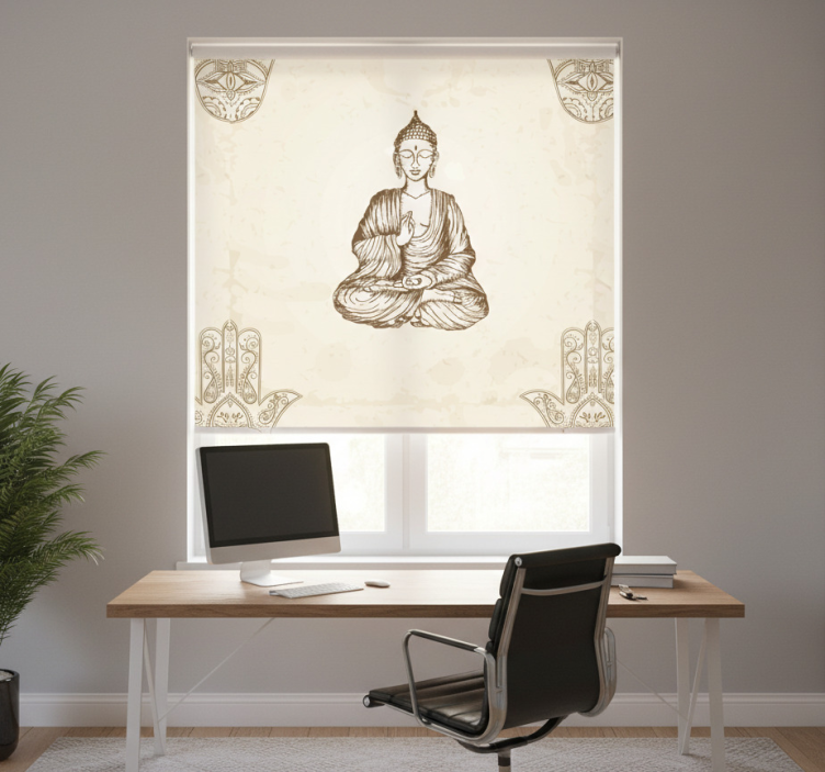 Office window roller blind with buddha hamsa hand