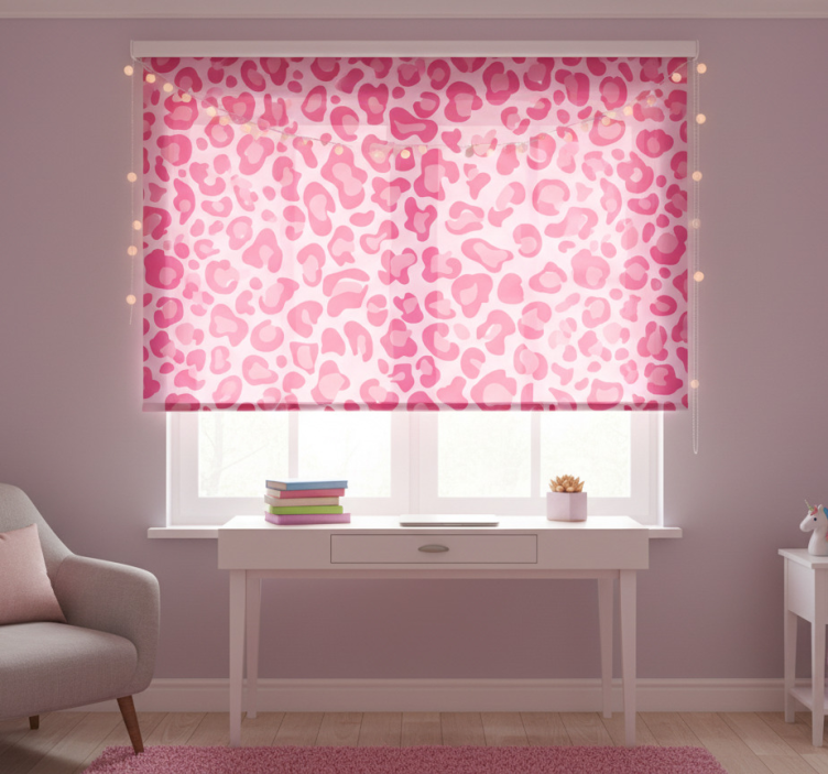 Reference: E8153Transform your space with our Pink roller blind in pink leopard print, a stunning blend of style and functionality. This eye-catching design features a playful leopard print in vibrant pink, bringing a unique flair to any room. The roller blind not only enhances your decor but also provides practical benefits such as easy assembly and disassembly in just 2 clicks. Enjoy the beauty of this roller blind while effortlessly regulating the room temperature and maintaining privacy.