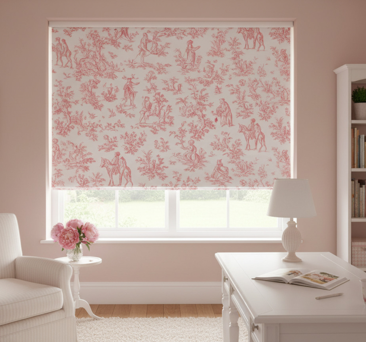 Pink roller blind in vintage countryside design