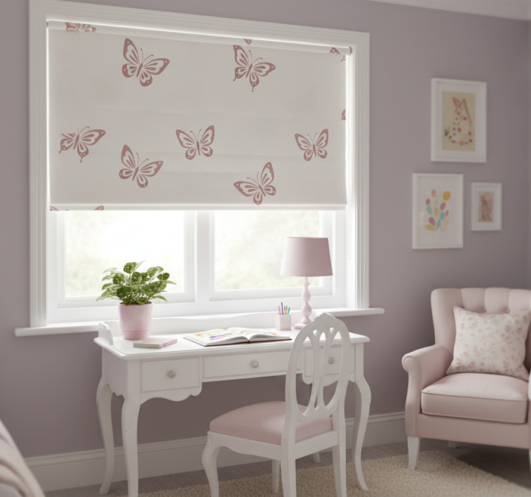 The Pink roller blind whimsical flutter butterfly is perfect for decorating your space with a touch of whimsy and elegance! This enchanting roller blind adds a playful yet sophisticated flair to any room, making it an ideal choice for nurseries, playrooms, or any space that could use a splash of color and creativity. Its charming butterfly design not only brightens up the decor but also complements various interior styles, bringing joy and inspiration into your home.