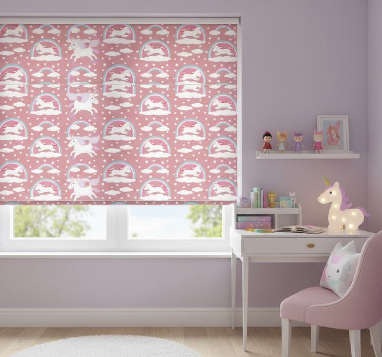 Pink roller blind with magical unicorn design
