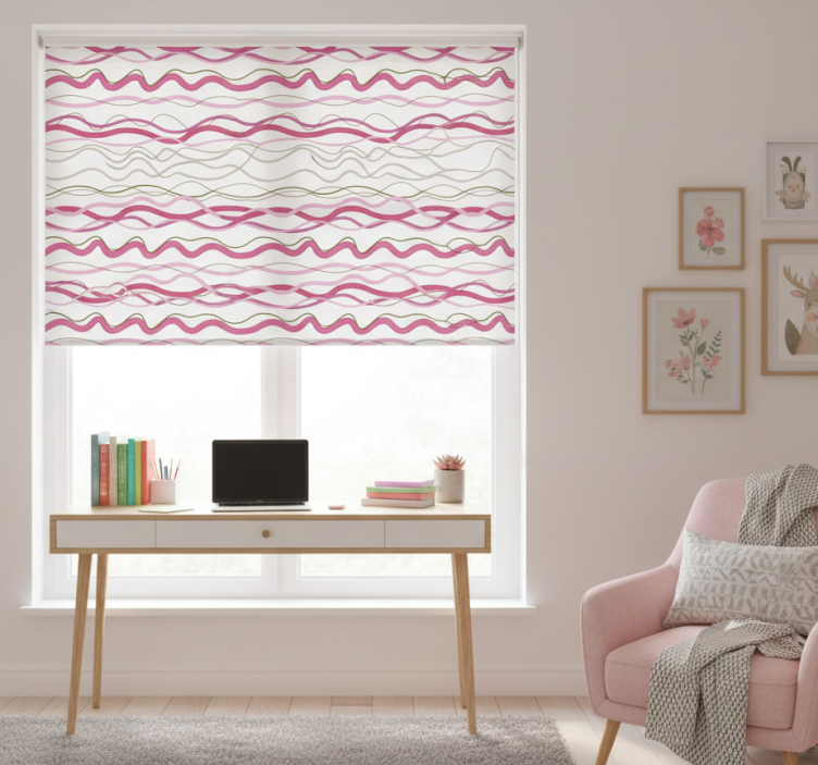 Transform your living space with our Pink roller blind with pink wavy stripes! This Pink roller blind not only serves a practical purpose but also uplifts your interior decor. Imagine the cheerful ambiance it brings, brightening your days while providing a sense of tranquility. Perfect for bedrooms, nurseries, or any area that craves a touch of charm, these roller blinds effortlessly complement your style and enhance your home’s aesthetic!