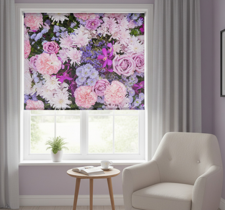 Pink roller blind with vibrant floral design