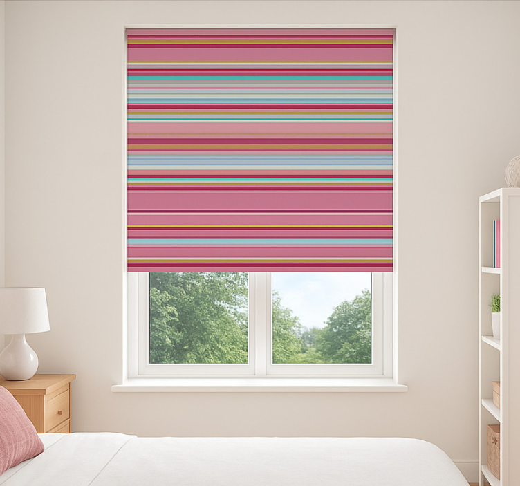 Reference: E5856The Pink Stripe Pattern teenage roller blind effortlessly combines style and functionality, making it the perfect addition to any teen's room. Featuring an eye-catching pink striped design, this roller blind not only enhances the aesthetic appeal of your space but also provides practical benefits. With easy assembly in just two clicks and convenient cleaning options, you can maintain a fresh and vibrant look. It effectively protects your room from direct sunlight while ensuring your privacy, allowing you to enjoy your space without compromise!