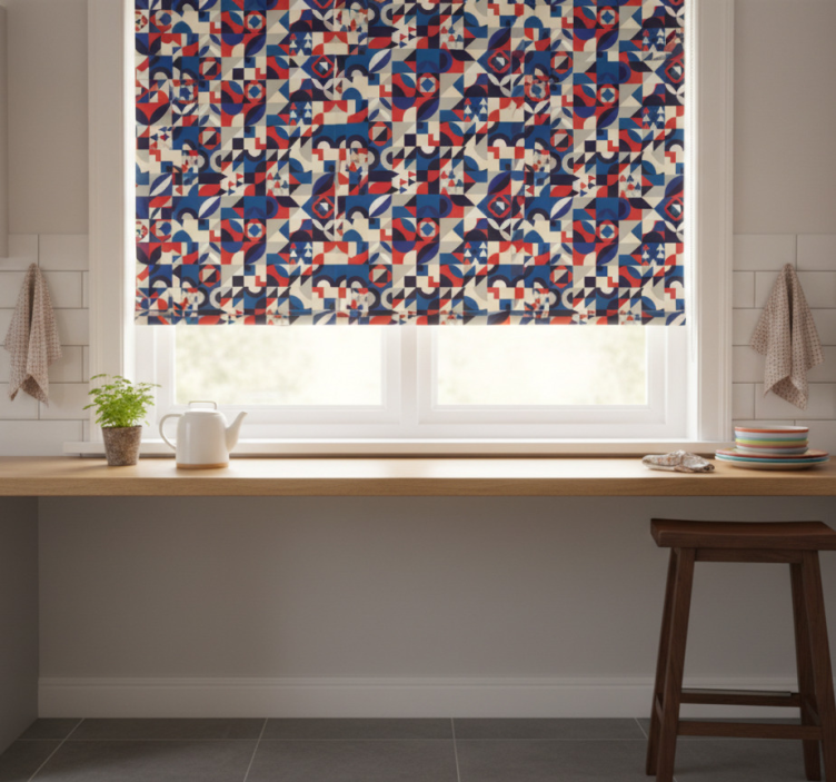 Our roller blind for kitchen window in red and blue mosaic roller blind for kitchen window is the perfect addition to your home decor. The vibrant colors and unique design inspire creativity and warmth in your kitchen space. Imagine hosting friends and family as they admire your beautifully adorned windows, all while enjoying the privacy and comfort this roller blind provides. Transform your kitchen into a delightful gathering spot with this eye-catching piece!