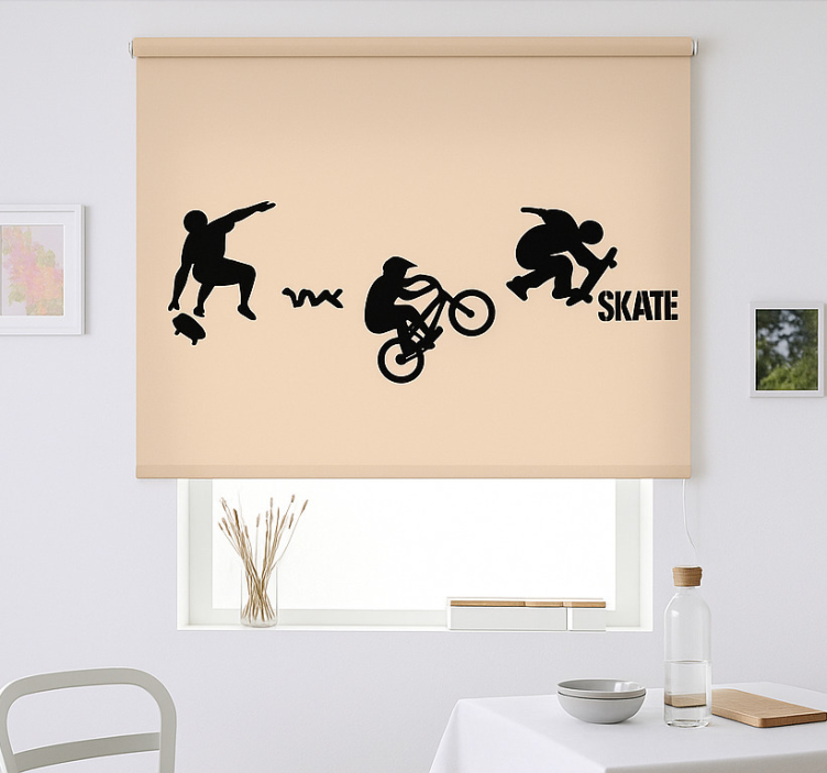 Reference: E5903Introducing the Skate BMX sport teenage roller blind, a vibrant and dynamic addition to any young skater's room! This roller blind showcases an energetic design that captures the essence of BMX culture, featuring bold graphics that inspire creativity and adventure. The blend of colors and action-packed visuals will instantly transform your space into a thrilling atmosphere where dreams of tricks and rides come alive!