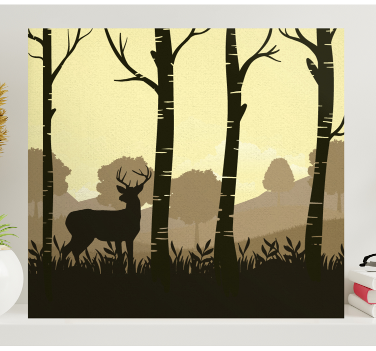 The Stag canvas silhouette of stag among trees beautifully captures the essence of nature, showcasing a majestic stag gracefully standing among trees, surrounded by lush grass and vibrant foliage. This stunning artwork evokes the serenity of a wildlife scene, inviting the beauty of the forest into your home.