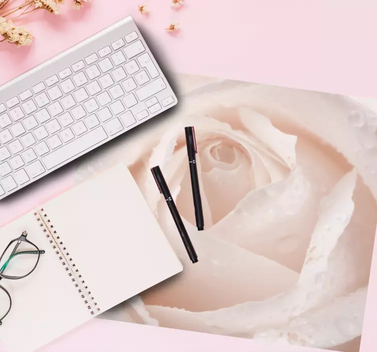 Experience the beauty of nature with our Original mouse pad delicate floral closeup. This exquisite design features a breathtaking close-up of rose petals adorned with delicate water drops, reminiscent of a gentle rain. The elegant photography captures the essence of purity and softness, bringing a touch of natural elegance and texture to your workspace.