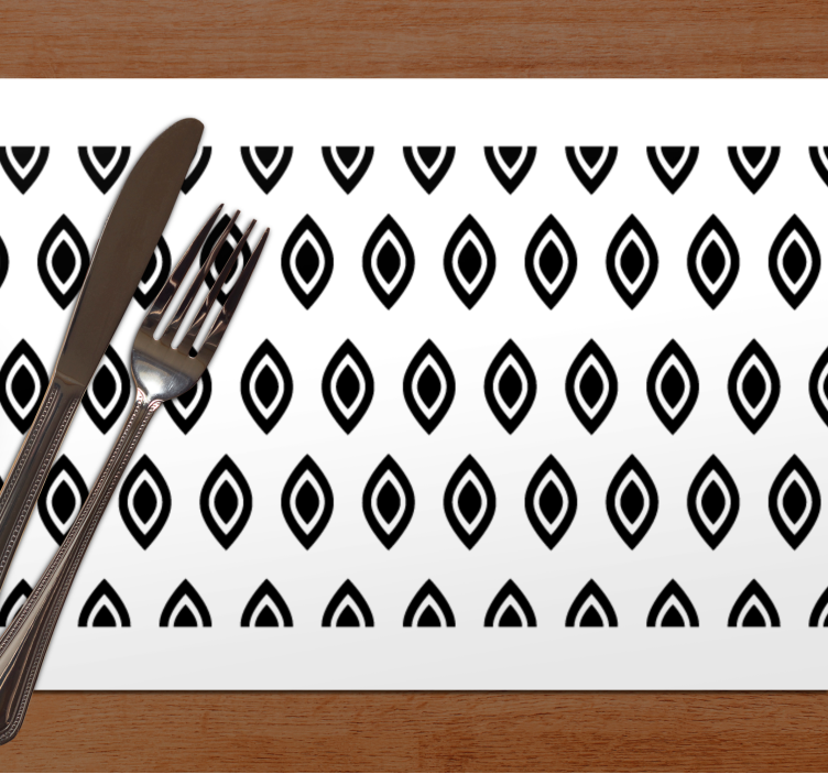 Are you looking to decorate your dining room table with a unique and original design? Then this geometric black and white placemat is just perfect. It consists of a black and white geometric pattern with black diamond shapes, each containing a smaller black diamond, on a white background. It has a minimalistic and elegant look, making it a stylish addition to your dining room table. Invite all your friends over for a lovely meal and show off your new geometric diamond pattern placemat. They will be amazed by your cool and original taste.