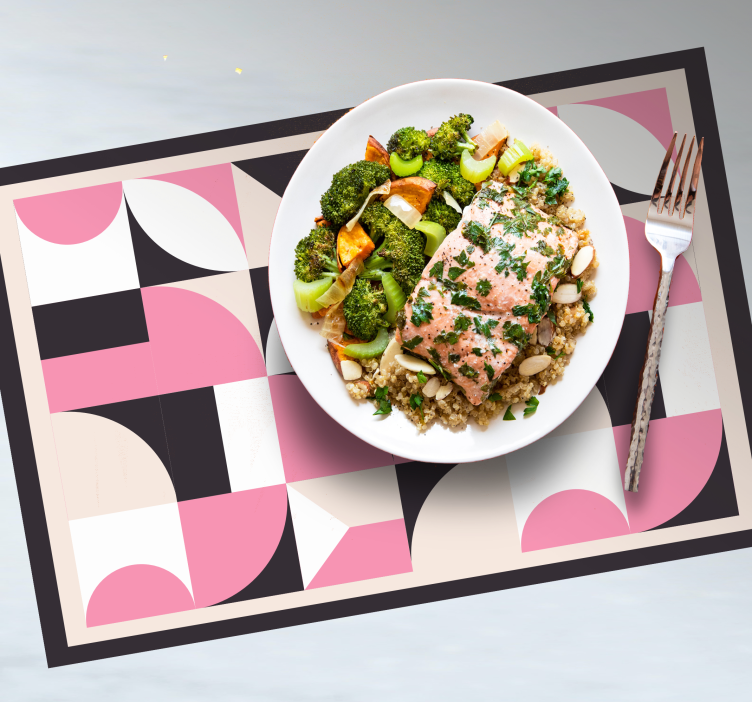 Introducing our Modern placemat geometric pattern design, a stunning piece that combines modern aesthetics with geometric flair. The design features an array of colorful shapes and abstract patterns that create a vibrant atmosphere in any dining space. Its graphic elements harmonize perfectly, offering a visual delight that transforms your table setting into a work of art. Elevate your dining experience with this exquisite, patterned masterpiece that encapsulates the beauty of geometry.