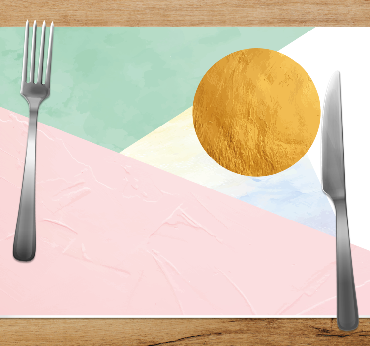 The Modern placemat with textured geometric designs is a stunning addition to any dining table, showcasing a vibrant interplay of golden tones and metallic foil elements. Its textured surface features an array of triangles and other geometric shapes, all brought to life in pastel colors. This modern and colorful design is not just a delight to the eyes but also a sophisticated touch to your table decor, creating an abstract aesthetic that inspires creativity and conversation!