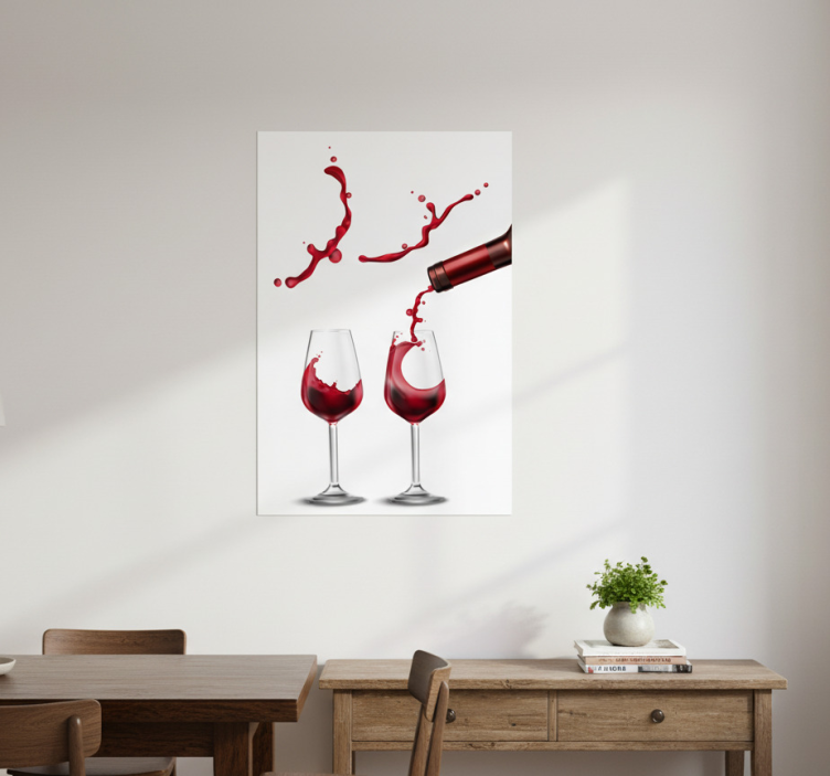 Reference: G653Introducing our stunning Kitchen poster dynamic wine splash art, a visually captivating design that brings life to your culinary space! This poster features a breathtaking depiction of wine splashing in vibrant colors, designed on high-quality 180g/m2 paper to ensure durability. It boasts a semi-matt finish that eliminates reflections, allowing the high color intensity to shine through and create an inviting atmosphere.