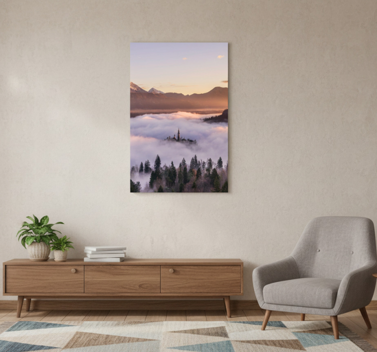 Transform your space with the Living room poster foggy castle in poland living room poster. This exquisite piece not only adds a touch of elegance to your decor but also inspires a sense of adventure and imagination. The ethereal imagery of a fog-covered castle invites guests to ponder the stories hidden within its walls, making it a perfect conversation starter and a beautiful focal point in any living area!