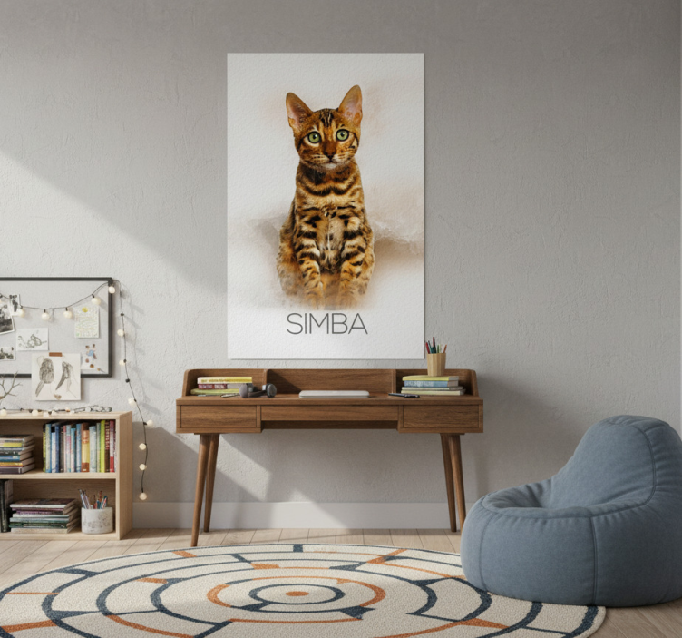Reference: G763Transform your living space with our stunning Living room poster pet portrait art print. This beautifully designed artwork features a semi-matt finish that enhances high color intensity, ensuring that every detail of your pet’s portrait shines. Printed on 180g/m2 grammage paper, this poster is perfect for adding a personal touch to your home. The absence of reflections allows for an uninterrupted view of your cherished pet, making it a true centerpiece in your living room!