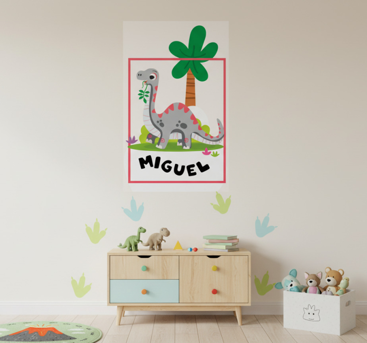 Reference: G963Transform your child's space with our delightful Nursery poster gray long neck dinosaur art print. This enchanting design features a whimsical long-neck dinosaur in soft gray tones, perfectly blending with various nursery themes. The high color intensity and semi-matt finish create a visually striking piece that captures the imagination while eliminating reflections.