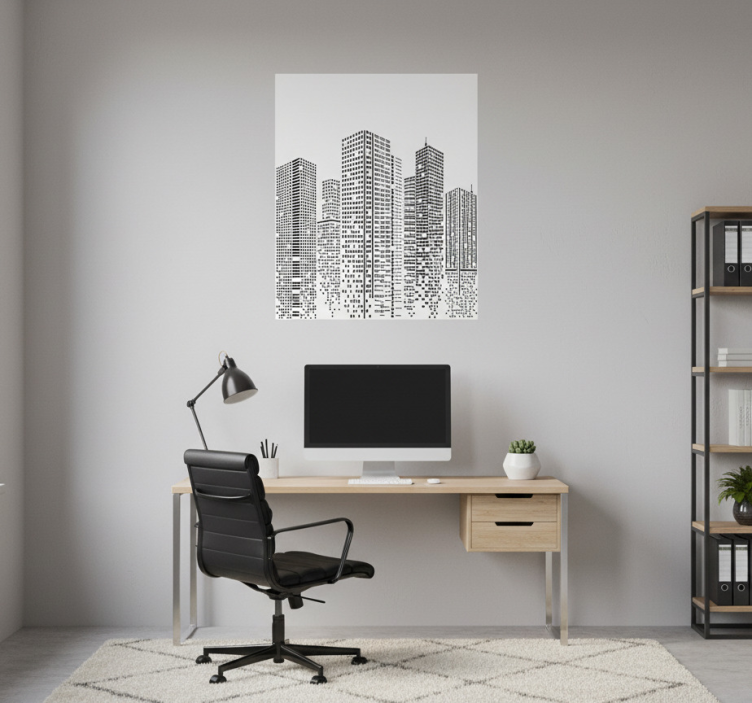 To make a statement with the Office poster skyline curtain office space poster, we recommend using double-sided adhesive tape for a seamless look. You can also frame it for a more polished appearance. Simply stick the strips to the back and hold each strip firmly for 10 seconds to ensure a strong bond. Alternatively, thumbtacks or reusable blu-tack can be used for easy placement!