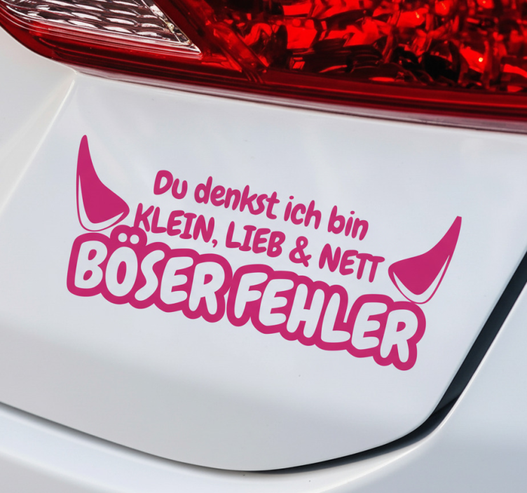 Reference: A53262Introducing our Car sticker bad mistake pink devil, a striking and playful design that adds a bold statement to any vehicle. This eye-catching sticker features a vibrant pink devil graphic that exudes mischief and charm, perfect for those with a fun-loving spirit. The design is crafted with high-quality materials, ensuring durability and a stunning finish that resists fading over time.